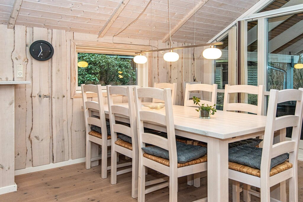 Dieses Ferienhaus mit Whirlpool und Sauna liegt kinderfreundlich am Ende einer Sackgasse im malerischen Arrild Ferieby. Das Ferienhaus ist gut aufgeteilt und verfügt über einen schönen Eingangsbereich mit Waschmaschine und Trockner sowie eine große Wohnküche mit offenem Wohnraum, der hohe Decken und viel Licht durch die großen Südfenster bietet. Es gibt sieben Schlafplätze in drei Schlafzimmern mit guten Betten und viel Stauraum. Das Haus verfügt über eine Gästetoilette und ein großes Badezimmer mit Whirlpool und direktem Zugang zur hauseigenen Sauna. Vom Wohnzimmer aus gelangt man direkt auf die überdachte Terrasse des Hauses, wo selbstverständlich ein Grill und Gartenmöbel zur Verfügung stehen. Auf der großen Rasenfläche gibt es viel Platz zum Ballspielen und Toben. Auf dem Grundstück befinden sich ein kleines Trampolin (max. 50 kg) (Benutzung auf eigene Gefahr/Versicherung) und eine kleine Rutsche. Der Garten ist für Hunde eingezäunt.In Arrild Ferieby finden Sie zahlreiche Aktivitäten für Jung und Alt. Dazu gehören ein Schwimmbad mit Dänemarks längster Wasserrutsche (107 Meter), zwei große Angelseen, Minigolf mit internationalen Zielen, eine Rollschuhbahn, ein Tennisplatz, ein Bouleplatz, ein Spielplatz, ein Fußballplatz und ein Restaurant. Der Eintritt ins Wasserpark ist frei. Nicht für Jugendgruppen mietbar.Kurz vor Ihrem Ankunftsdatum kann eine rückzahlbare Kaution erhoben werden. Die Kaution stellt sicher, dass Ihr Aufenthalt reibungslos verläuft, und deckt eventuelle Zusatzleistungen oder Verbrauchskosten ab.Diese Kaution deckt den Verbrauch von Nebenkosten während Ihres Aufenthalts sowie zusätzliche in Anspruch genommene Leistungen ab.Der endgültige Betrag wird anhand der tatsächlichen Zählerstände und Nutzung zusätzlicher Services angepasst. Ein etwaiger Restbetrag wird Ihnen innerhalb von 21 Tagen nach dem Check-out zurückerstattet.Die Kaution dient lediglich als Vorauszahlung für Leistungen, die Sie ohnehin bezahlen würden, und ermöglicht einen reibungslosen Ablauf Ihres Aufenthalts und Check-outs.