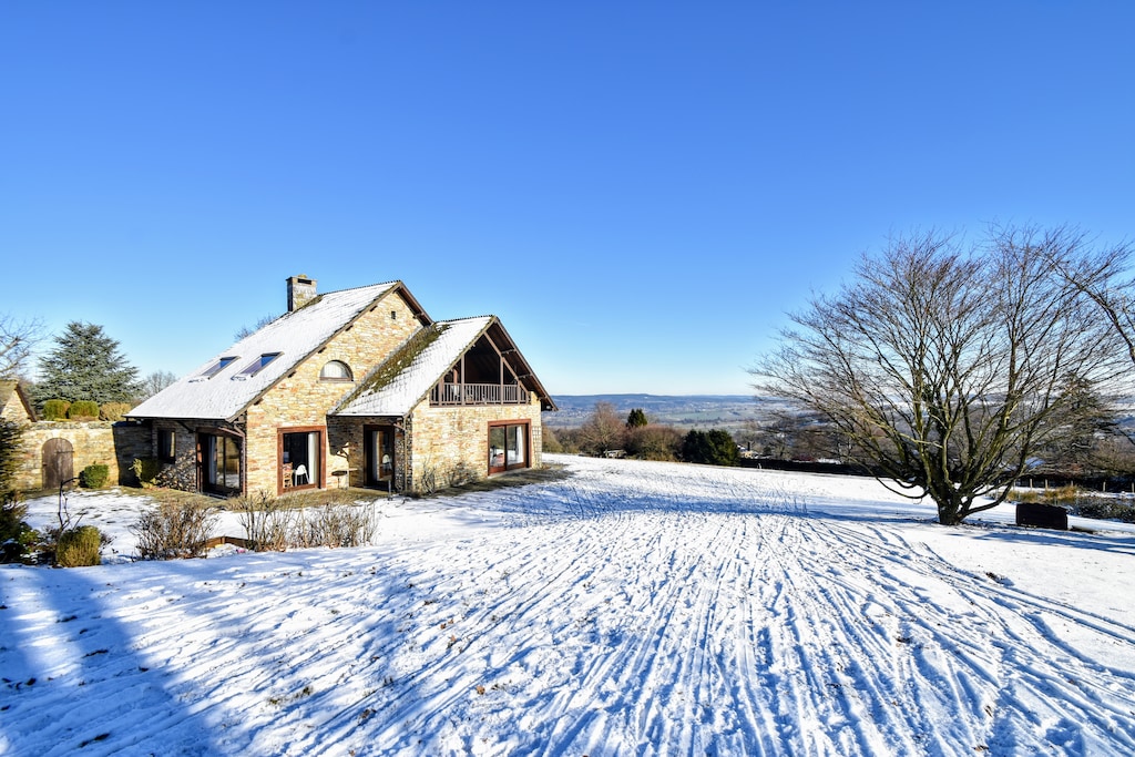 Een mooi groot huis, zowel binnen als buiten is enorm veel ruimte. En dan dat geweldige uitzicht! Vanuit de woonkamer kijk je uit op de vallei met Baneux, vanuit de keuken en eetkamer op de mooie tuin aan de achterkant, en vanuit onze slaapkamer op een weide met koeien. Aan alle kanten mooi! De tuin en het huis zijn goed onderhouden, het is een heerlijk rustige plek, en de goed gemarkeerde wandelingen starten op loopafstand. Wij waren blij verrast met het speelhuisje en de zandbak in de tuin, die stonden niet vermeld. De ligstoelen waren heerlijk, de speelkamer leuk, de goede tv was erg fijn met alle sport op tv. De dag voor onze aankomst was de bliksem ingeslagen, zodat de kookplaat kuren vertoonde. Gelukkig is hier snel en adequaat op gereageerd door de beheerster, zodat we toch konden koken. Uitstekende service dus!