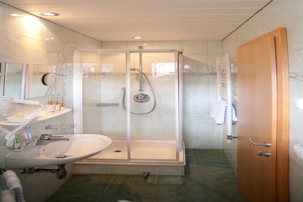 Einzelbett, Doppelbett, TV (Flatscreen, Satellit), Dusche, Waschbecken, Toilette