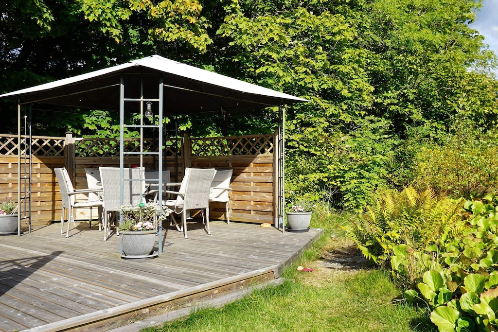 Willkommen in dieser gemütlichen Unterkunft mit Nähe zum Meer, Badeufer, Bootsanleger und dem traumhaft schönen Naturschutzgebiet Vägeröds Täler. Unten an der Küste in Fiskebäckskil finden Sie kleine, traditionelle Bootshäuser, deren Öffnungen dem Wasser zugewandt sind. Weiter oben am Ufer stehen herrschaftliche, reich verzierte Holzhäuser mit hübschen Veranden, die kunstvoll ausgeschmückt wurden. Zwischen den Kapitänsvillen und Fischerhütten im idyllischen Fiskebäckskil schlängeln sich viele gemütliche Spazierwege. In der Umgebung gibt es mehrere Badeufer mit Strandlinie oder Stegen zu entdecken. Mieten Sie vor Ort ein Kajak oder unternehmen Sie eine Robbensafari. Wandern Sie auch den Küstenpfad entlang und erleben Sie die reizvolle, hügelige Küstenlandschaft aus nächster Nähe. Die Lage der Unterkunft an der Hauptstraße von Skaftö macht es auch leicht, die Umgebung mit Fischerdörfern, Schären, Naturschutzgebieten und andere interessante Ausflugsziele auf Skaftö mit dem Auto zu erkunden. Vom Parkplatz am Eingang gehen Sie am Haus des Eigentümers vorbei und einige Treppen hoch zum Eingang des Ferienhäuschens. Im Inneren werden Sie von einem Vorraum empfangen, von dem Sie weiter in die Küche des Hauses gelangen, die mit Herd, Mikrowelle, Kühlschrank mit Gefrierfach und Kaffeemaschine ausgestattet ist. Durch die etwas niedrigere Raumhöhe von 205 cm wird das gemütliche Ambiente noch verstärkt. Im Anschluss an die Küche liegt das Wohnzimmer doppeltem Schlafsofa. Neben der Küche liegt auch das Schlafzimmer des Hauses mit Etagenbett; 120 cm breite Liegefläche unten / 90 cm breite Einzelkoje darüber. Im Ferienhaus befindet sich auch ein WC mit Waschbecken. Die Dusche liegt separat in einem Nebengebäude neben dem Eingang. Eine Waschmaschine kann auf Anfrage im Haus des Eigentümers genutzt werden. Auf den beiden Terrassen des Ferienhauses, die teilweise überdacht sind, stehen Gartenmöbel und ein Grill bereit. Hier gibt es zudem Platz, um sich nach einem Strandtag oder einer Runde auf dem Golfplatz ausruhen zu können. Das Ferienhaus ist mit WLAN ausgestattet. Zum Ferienhaus gehört außerdem ein 3 x 9 m großer Liegeplatz für ein Boot, der nur auf vorherige Anfrage vom Eigentümer ausgeliehen werden kann. Der Liegeplatz liegt gut geschützt in Getevikssund. Für Tagesausflüge bieten sich Ziele wie z.B. Havets Hus in Lysekil, Nordens Ark, Smögen, Kungshamn oder andere Schärengemeinden im Norden von Bohuslä an. Auch die idyllische Insel Bassholmen mit ihrem Museum für traditionelle Boote ist einen Besuch wert. Von Fiskebäckskil verkehrt auch eine kleine Personenfähre nach Lysekil.