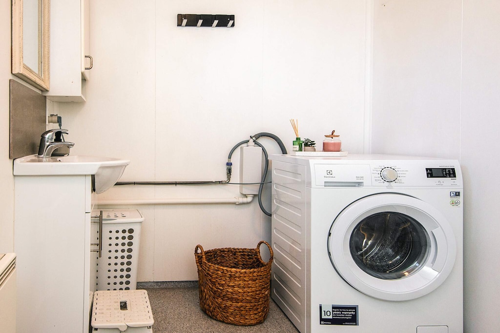 Sommerhuset er godt indrettet, og det er dejligt med udestuen og vildmarksbadet,