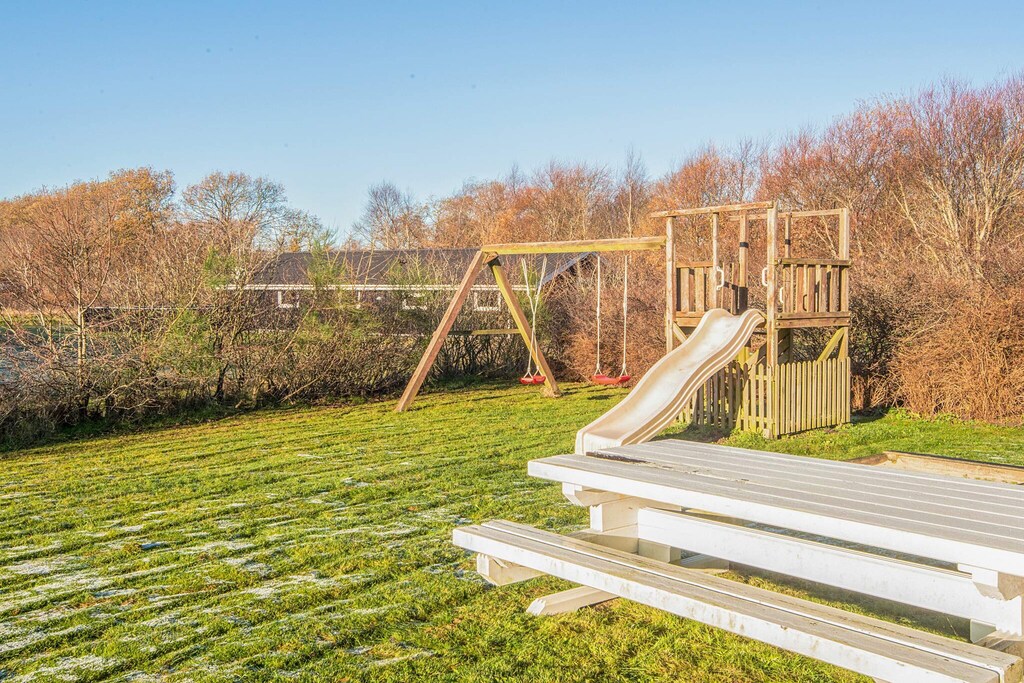 Dieses gemütliche Ferienhaus in Bork Havn ist ideal für Familien oder Gruppen und bietet Platz für bis zu 10 Gäste. Das Haus verfügt über einen hellen, offenen Küchen- und Wohnbereich mit Holzofen für kühlere Abende. Vom Wohnzimmer aus gelangen Sie auf eine schöne, überdachte Terrasse, ideal zum Essen im Freien oder zum Entspannen in der Natur. Der Innenraum ist komfortabel gestaltet: Vier Schlafzimmer, jeweils mit Doppelbetten, bieten viel Platz für erholsame Nächte. Das Haus verfügt außerdem über zwei Badezimmer, eines davon mit Whirlpool und Sauna – ideal zum Entspannen nach einem erlebnisreichen Tag in der Umgebung. Die großzügige Raumaufteilung und die familienfreundliche Ausstattung sorgen für einen komfortablen Aufenthalt für Groß und Klein. Für Unterhaltung sorgen die Innenbereiche zum geselligen Beisammensein, während der Außenbereich zu aktivem Spiel und Spaß an der frischen Luft einlädt. Das Ferienhaus liegt auf einem großen, malerischen Naturgrundstück und bietet viel Platz für Sport, Spiel und Outdoor-Aktivitäten. Kinder können sich auf dem Kletterturm und im Sandkasten vergnügen, während die ganze Familie sich an der Tischtennisplatte auf der Terrasse vergnügen kann. Mit seiner Kombination aus modernem Komfort, Wellness-Einrichtungen und viel Platz im Freien bietet dieses Haus den idealen Ausgangspunkt für einen unvergesslichen Urlaub in der Gegend von Bork Havn und verbindet Entspannung, Spaß und Natur für Gäste jeden Alters.