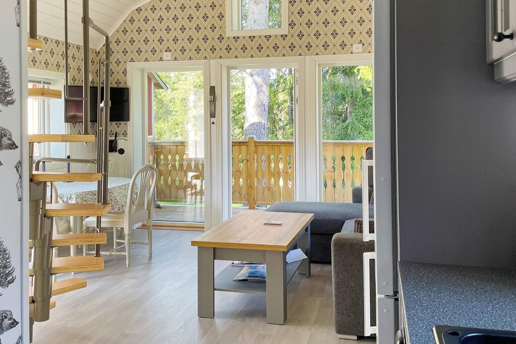 Willkommen in einem kleinen aber gemütlichen, neu erbauten Ferienhäuschen. Es bietet guten Komfort auf kleiner Fläche. Gedacht für eine kleine Familie oder ein Paar. Das in traditionellem Attefall-Stil erbaute Häuschen bietet oben auf dem niedrigen Hems (Sitzhöhe) zwei Schlafplätze. Unten im Wohnbereich steht zudem eine doppelte Schlafcouch bereit. Das komplett geflieste Badezimmer verfügt über angenehme Fußbodenheizung, Dusche und WC. Eine große private Terrasse mit Gartenmöbeln und Grill für gemütliche Sommerabende steht im Außenbereich für Sie bereit. Die Rückseite des Häuschens liegt am Privathaus der Eigentümer, Vorderseite und Holzterrasse zeigen zum Wald. Wunderbar erholsame Umgebung! Nur 300 m vom Haus entfernt befindet sich ein beliebter Badesee. Es gibt viele Naturgebiete mit schönen Wanderwegen in der Nähe, aber auch die Innenstadt von Stockholm mit ihrer Kultur, Restaurants und Theatern ist ganz in der Nähe. Hier können Sie alles erleben, vom ABBA-Museum über das Vasa-Museum bis hin zum Königlichen Schloss und vieles mehr. Wenn Sie schwimmen möchten, liegt das Farsta Strandbad günstig und bietet Bademöglichkeiten im See, entweder vom Strand oder vom Steg aus. Für diejenigen, die lieber im Meer schwimmen, ist Årsta Havsbad eine großartige Option mit einem wunderschönen Strand. Bei Buchung der Bettwäsche sind Handtücher inbegriffen. Das Aufladen von Elektroautos ist in der Hütte nicht gestattet.