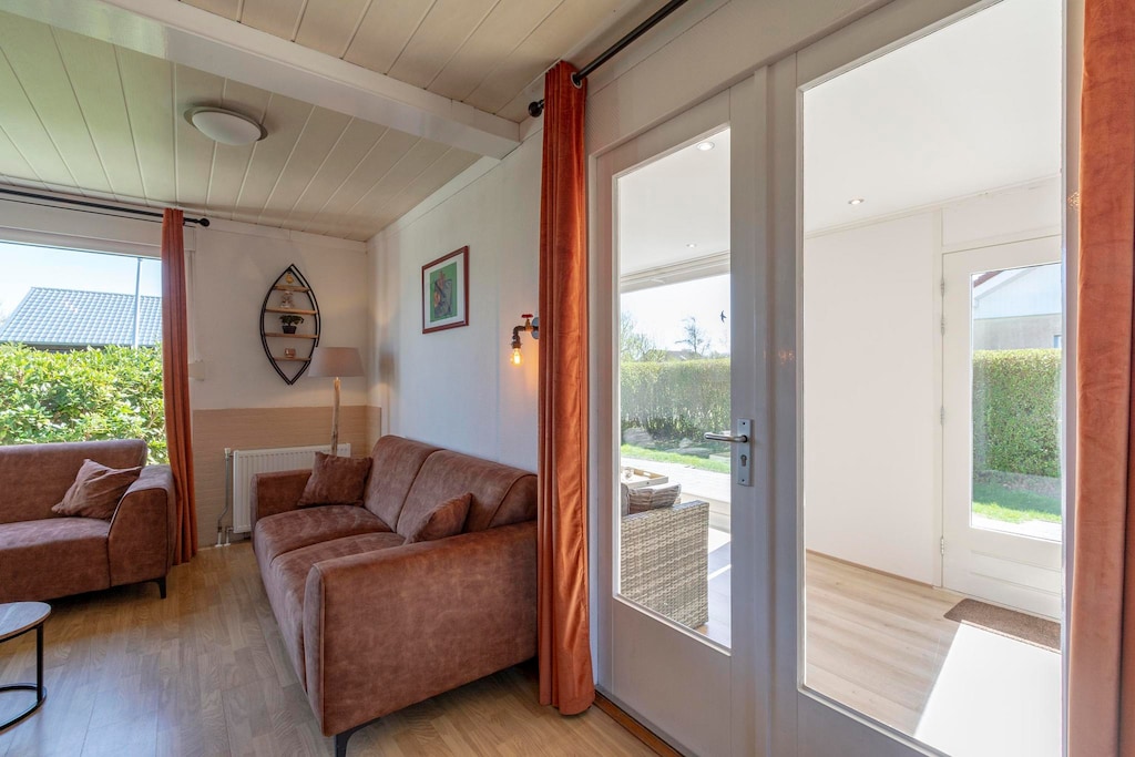 Eines der herausragenden Merkmale dieses Bungalows ist das gemütliche Gartenzimmer, das ein einzigartiges, halboffenes Erlebnis bietet, ideal, um im Frühling und Herbst die Sonne zu genießen. Das einladende Wohnzimmer ist komfortabel eingerichtet und verfügt über einen großen Esstisch und eine gemütliche Sitzecke. Die voll ausgestattete Küche sorgt dafür, dass Sie alles haben, was Sie zum gemeinsamen Zubereiten von Mahlzeiten benötigen. Mit drei geräumigen Schlafzimmern, jedes mit bequemen Betten, und einem modernen Badezimmer mit ebenerdiger Dusche bietet es alle Annehmlichkeiten für einen erholsamen Aufenthalt. Der umzäunte Garten ist besonders vorteilhaft für Familien mit Kindern oder Haustieren, da er einen sicheren Platz zum Spielen und Erkunden bietet. Maximal zwei Hunde sind in Ihrem Urlaub willkommen.