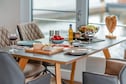 Die offene Küche ist komplett ausgestattet mit Cerankochfeld, Minibackofen, Kaffeemaschine, Toaster, Geschirrspüler und Kühlschrank mit Gefrierfach – perfekt für die Selbstverpflegung. Der Wohn-/Essbereich verfügt über einen Flachbild-Sat-TV, ein Radio, einen Gaskamin und einen Esstisch für gemütliche Abende.