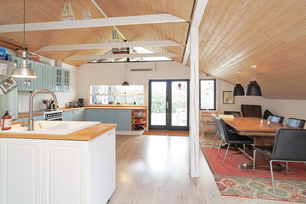 Dieses einladende Ferienhaus befindet sich in Kyndeløse. Ursprünglich 1983 erbaut, wurde es 2022 komplett renoviert und bietet nun modernen Komfort, ohne seinen einladenden Charme zu verlieren. Das Haus ist hell und geräumig und verfügt über einen offenen Küchen-, Ess- und Wohnbereich, in dem die ganze Familie zusammenkommen, gemeinsam essen und entspannen kann. Große Fenster lassen viel Tageslicht herein und schaffen eine warme und luftige Atmosphäre. Das Haus verfügt über drei Schlafzimmer: eines mit einem Doppelbett, ein zweites mit einem Doppel- und einem Einzelbett und ein drittes mit einem Einzelbett und einem Kinderbett. Zusätzlich verfügt das Wohnzimmer über ein Schlafsofa für zwei weitere Gäste, sodass das Haus flexible Schlafmöglichkeiten für Familien und Gruppen bietet. Ein modernes Badezimmer mit Fußbodenheizung sorgt für zusätzlichen Komfort. Im Außenbereich steht eine überdachte Terrasse zur Verfügung, die sich ideal zum Essen im Freien oder zum Grillen am Abend eignet. Der großzügige, gepflegte Garten bietet viel Platz zum Spielen und verfügt über ein Trampolin, dessen Nutzung auf eigene Gefahr erfolgt. Ein schöner Badesteg liegt nur wenige hundert Meter unterhalb des Hauses und bietet einen einfachen Zugang zu erfrischenden Bademöglichkeiten. Wassersportbegeisterte werden das kostenlos zur Verfügung stehende Kanu zu schätzen wissen, mit dem sie die malerische Umgebung erkunden können. Dieses Ferienhaus vereint moderne Ausstattung mit familienfreundlicher Umgebung und ist ideal für Entspannung und Outdoor-Spaß. Bitte beachten Sie, dass die Vermietung an Jugend- oder Arbeitsgruppen nicht gestattet ist.Kurz vor Ihrem Ankunftsdatum kann eine rückzahlbare Kaution erhoben werden. Die Kaution stellt sicher, dass Ihr Aufenthalt reibungslos verläuft, und deckt eventuelle Zusatzleistungen oder Verbrauchskosten ab.Diese Kaution deckt den Verbrauch von Nebenkosten während Ihres Aufenthalts sowie zusätzliche in Anspruch genommene Leistungen ab.Der endgültige Betrag wird anhand der tatsächlichen Zählerstände und Nutzung zusätzlicher Services angepasst. Ein etwaiger Restbetrag wird Ihnen innerhalb von 21 Tagen nach dem Check-out zurückerstattet.Die Kaution dient lediglich als Vorauszahlung für Leistungen, die Sie ohnehin bezahlen würden, und ermöglicht einen reibungslosen Ablauf Ihres Aufenthalts und Check-outs.