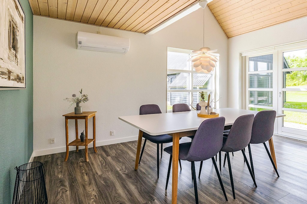 Gut gelegenes und gepflegtes Ferienhaus, 2021 teilweise renoviert und im Herzen des Himmerland Golf- und Spa-Resorts gelegen. Die Lage ist ideal für Golffreunde und Naturliebhaber, da der Sjørup See in unmittelbarer Nähe des Ferienhauses liegt. Sie können im klaren Wasser des Sees mit einem großen, schönen Badesteg schwimmen und am Wasserrand befindet sich eine Fass-Sauna (Nutzung gegen Gebühr). Darüber hinaus bietet es die perfekte Umgebung für einen aktiven Urlaub für die ganze Familie. Die zahlreichen Einrichtungen und Angebote des Resorts (gegen Gebühr) umfassen mehrere gute Golfplätze, eine Spa-Abteilung mit zahlreichen Wellness-Einrichtungen, Bowling, Fitness, Restaurants, Minigolf und einen Spielplatz für die Kleinsten sowie einen Wasserpark. Die Sportanlage bietet unter anderem Paddle-Tennis im Innen- und Außenbereich, Kunstrasenplätze, Tennisplätze und einen Mehrzweckplatz. Das Ferienhaus ist energieeffizient mit einer Wärmepumpe ausgestattet, was einen geringeren Verbrauch ermöglicht, und verfügt über einen durchdachten Grundriss. Im Erdgeschoss befinden sich eine Wohnküche mit Terrassenzugang, zwei Schlafzimmer, eines davon mit einem Doppelbett (140 x 200 cm) und ein Schlafzimmer mit zwei Einzelbetten, sowie ein Badezimmer. Die Küche ist gut ausgestattet mit Cerankochfeld, Dunstabzugshaube, Geschirrspüler, Kühlschrank, Gefrierschrank (mind. 60 Liter) und Kaffeemaschine. Ein Hochstuhl für die Kleinen ist vorhanden. Das Badezimmer verfügt über eine Dusche, eine Badewanne und eine Toilette. Eine Waschmaschine ist ebenfalls vorhanden. Im 1. Stock befindet sich ein modern eingerichtetes Wohnzimmer mit kostenlosem Highspeed-Internet und einem Flachbildfernseher, auf dem Sie Ihre eigenen Fernsehprogramme streamen können. Zusätzlich befindet sich ein Schlafzimmer mit zwei Einzelbetten. Das Haus bietet eine Terrasse mit guten Gartenmöbeln und einem Grill, auf der Sie Ihr Abendessen genießen können, während die Sonne über dem Grundstück untergeht. Ein Haus, das für alle Jahreszeiten geeignet ist und erlebt werden muss. Wird nicht an Jugendgruppen vermietet.Kurz vor Ihrem Ankunftsdatum kann eine rückzahlbare Kaution erhoben werden. Die Kaution stellt sicher, dass Ihr Aufenthalt reibungslos verläuft, und deckt eventuelle Zusatzleistungen oder Verbrauchskosten ab.Diese Kaution deckt den Verbrauch von Nebenkosten während Ihres Aufenthalts sowie zusätzliche in Anspruch genommene Leistungen ab.Der endgültige Betrag wird anhand der tatsächlichen Zählerstände und Nutzung zusätzlicher Services angepasst. Ein etwaiger Restbetrag wird Ihnen innerhalb von 21 Tagen nach dem Check-out zurückerstattet.Die Kaution dient lediglich als Vorauszahlung für Leistungen, die Sie ohnehin bezahlen würden, und ermöglicht einen reibungslosen Ablauf Ihres Aufenthalts und Check-outs.