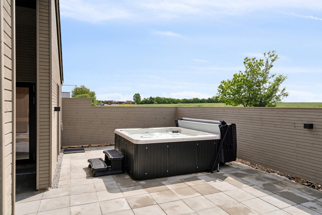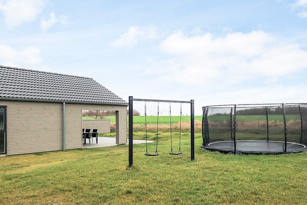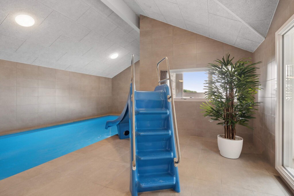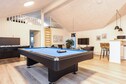 Dieses fantastische Dancenter-Ferienhaus am Hasmark Strand ist die ideale Wahl für einen unvergesslichen Urlaub für bis zu 16 Personen. Das Ferienhaus ist perfekt für große Familien oder Gruppen von Freunden, die in einer komfortablen und luxuriösen Umgebung gemeinsame Zeit verbringen möchten. Das Ferienhaus liegt in einer naturschönen Gegend in der Nähe der wunderschönen Küste und der fantastischen Angelmöglichkeiten in Enebærodde. Egal ob Fliegenfischen, Nachtangeln oder Wattfischen, hier finden Sie das ganze Jahr über ein Paradies an Möglichkeiten, Ihrem Hobby nachzugehen. Die frische Luft und die ruhige Atmosphäre machen diesen Ort zum perfekten Ausgangspunkt für Entspannung und Abenteuer im Freien. Wenn Ihre Beine nach einem langen Spaziergang in der Natur müde sind, können Sie im Whirlpool im Freien entspannen und sich von der Hitze der Sauna aufwärmen lassen. Wer noch Energie hat, findet im Pool mit Schwimmtrainer und Wasserrutsche jede Menge Spaß für Groß und Klein. Das Feriendomizil bietet sechs geräumige Schlafzimmer, dazu zwei gemütliche Lofts mit vier Schlafplätzen und drei Badezimmer und ist somit ideal für große Gruppen. Es gibt Raum für Entspannung und geselliges Beisammensein – das Wohnzimmer mit seinem Holzofen ist der perfekte Ort, um nach einem aktiven Tag zusammenzukommen. Die Küche ist komplett ausgestattet und bietet alles, was Sie für die Zubereitung köstlicher Mahlzeiten benötigen. Der lange Esstisch in der Mitte des Hauses bietet ausreichend Platz für gemeinsame Mahlzeiten. Außerdem kann man sich hier zu Spiele- und lustigen Abenden treffen. Der Aktivitätsraum des Ferienhauses bietet mit Tischfußball, Tischtennis, Darts und Billard jede Menge Möglichkeiten für Spaß und Wettkampf. Wer Lust hat zuzuschauen, kann sich in der Sitzecke eine Pause gönnen oder einen Drink von der Bar genießen. Im Außenbereich erwartet Sie eine große Terrasse mit bequemen Gartenmöbeln und Lounge-Sets, auf der Sie die Sonne und Grillabende genießen können. Die Kinder können sich auf dem unterirdischen Trampolin (Benutzung auf eigene Gefahr/Versicherung) und den am Boden befestigten Schaukeln vergnügen. Keine Vermietung an Jugendgruppen erwünscht! Bitte beachten Sie, dass es sich bei den gezeigten Fotos um Demobilder handelt, da sich das Haus derzeit noch im Bau befindet und das fertige Haus daher von den gezeigten Fotos abweichen kann. In der Gegend finden derzeit noch weitere Bauarbeiten statt, daher kann es während Ihres Aufenthalts zu Baulärm kommen.
