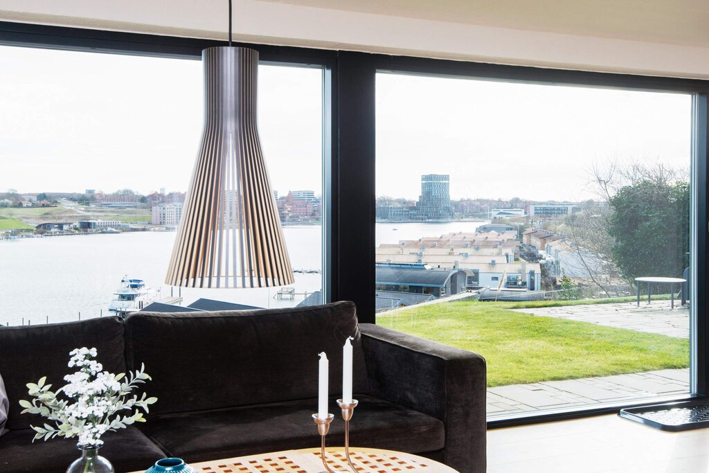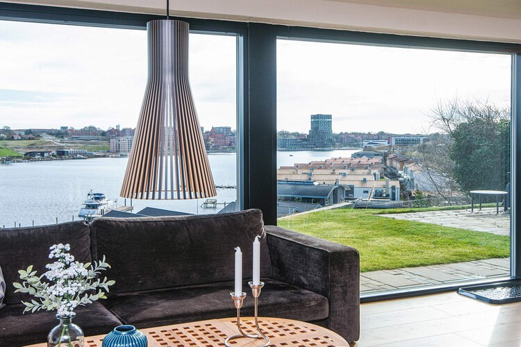 Einzigartige Luxuswohnung in attraktiver Lage mit Panoramablick auf den Alssund. Die Wohnung wurde 2020 komplett renoviert und befindet sich in ausgezeichnetem Zustand. Es gibt einen Hauswirtschaftsraum mit viel Platz für Mäntel und Schuhe, eine helle Küche mit Geschirrspüler und Backofen mit integrierter Mikrowelle, offen zum Familienzimmer und Wohnzimmer, von wo aus man einen atemberaubenden Blick auf den Alssund hat. Das Wohnzimmer verfügt über ein Sofa und einen Fernseher mit Chromecast. Es gibt ein großes Badezimmer mit Dusche und zwei schöne Schlafzimmer. Eine schöne Terrasse mit Grill und Gartenmöbeln lädt zum Grillen, Sonnenbaden und nicht zuletzt zur herrlichen Aussicht ein. Hier können Sie den Anblick vorbeifahrender Segelboote und der vielen Sportbegeisterten genießen, die in der Umgebung Kajaks und Paddleboards nutzen. Zum Schwimmen gibt es viele Möglichkeiten, z. B. liegt das Hafenbad von Sønderborg in der Nähe, und es gibt viele schöne Strände in der Umgebung, darunter auch am Schloss Sønderborg. Von der Wohnung aus haben Sie einen Blick auf das Hotel Alsik, das zahlreiche Spa- und Wellnessangebote sowie eine außergewöhnliche Gastronomie bietet. Sønderborg hat sowohl kulturell als auch historisch viel zu bieten. So sind beispielsweise die Dybbøl Mølle und das Schloss Sønderborg vom Haus aus zu Fuß erreichbar, und in Sønderborg Midtby gibt es viele Restaurants und Einkaufsmöglichkeiten. Nicht an Jugendgruppen vermietbar. Die Wohnung verfügt größtenteils über Fußbodenheizung, Strom und Wasser sind im Mietpreis inbegriffen. Eine Luft-Luft-Wärmepumpe sorgt das ganze Jahr über für ein angenehmes Raumklima.