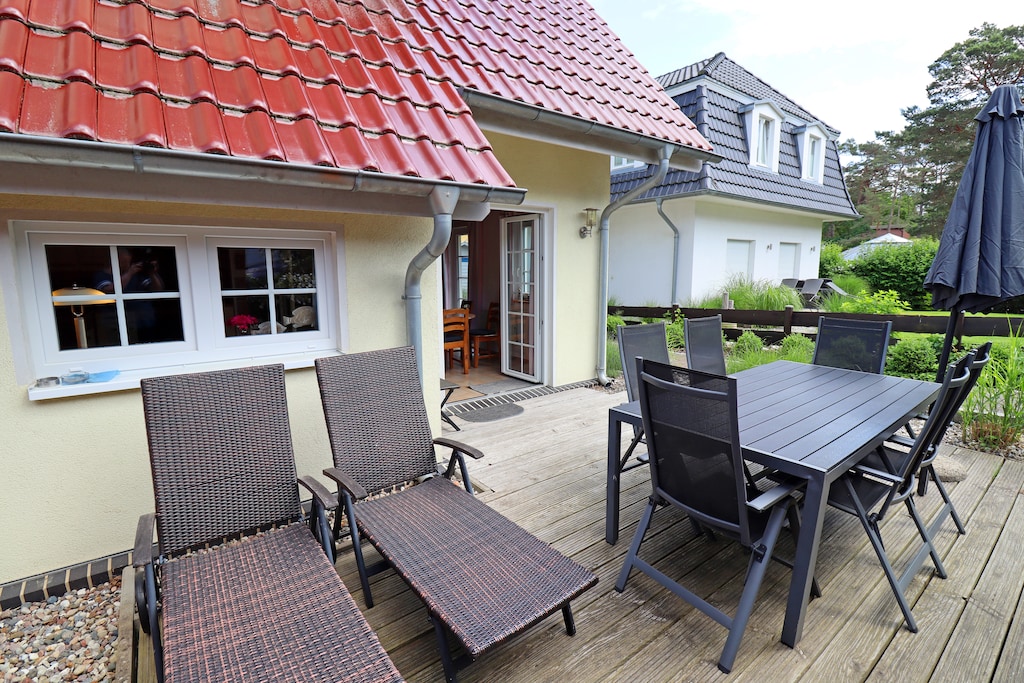Klimaneutrales, Co2-Emissionsfreies Ferienhaus (elektrische Fußboden- und Wandheizkörper). Für Allergiker geeignet (Fliesen- und Laminatböden). Komfortable Doppelhaushälfte nur 100 m vom feinen Sandstrand entfernt. Ihr Domizil liegt auf einem 250 m² großen, naturbelassenen Grundstück direkt im Dünengürtel an einer Privatstraße - unmittelbar zwischen Sandstrand und Küstenwald. Das Bernsteinhaus mit seinen beiden Haushälften ist perfekt für befreundete Familien (2. Haushälfte: DOS08007).