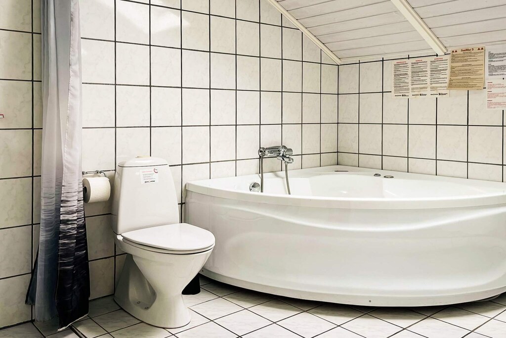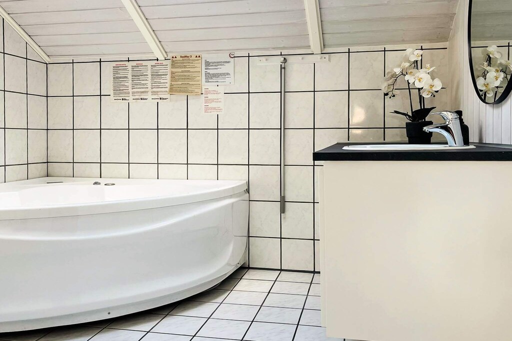 Dieses Ferienhaus liegt in einem beliebten Ferienhausgebiet. Hier können Sie in Whirlpool, Sauna oder Küchen-Wohnbereich wunderbar entspannen. Im Garten können sich die Kinder im Sandkasten, auf der Schaukel, im Spielhäuschen oder auf der großen Rasenfläche vergnügen. Auf der großen Terrasse können Sie Sonnenbaden und schöne Grillabende verbringen. Ein netter Badestrand ist vom Haus aus zu Fuß gut erreichbar.
