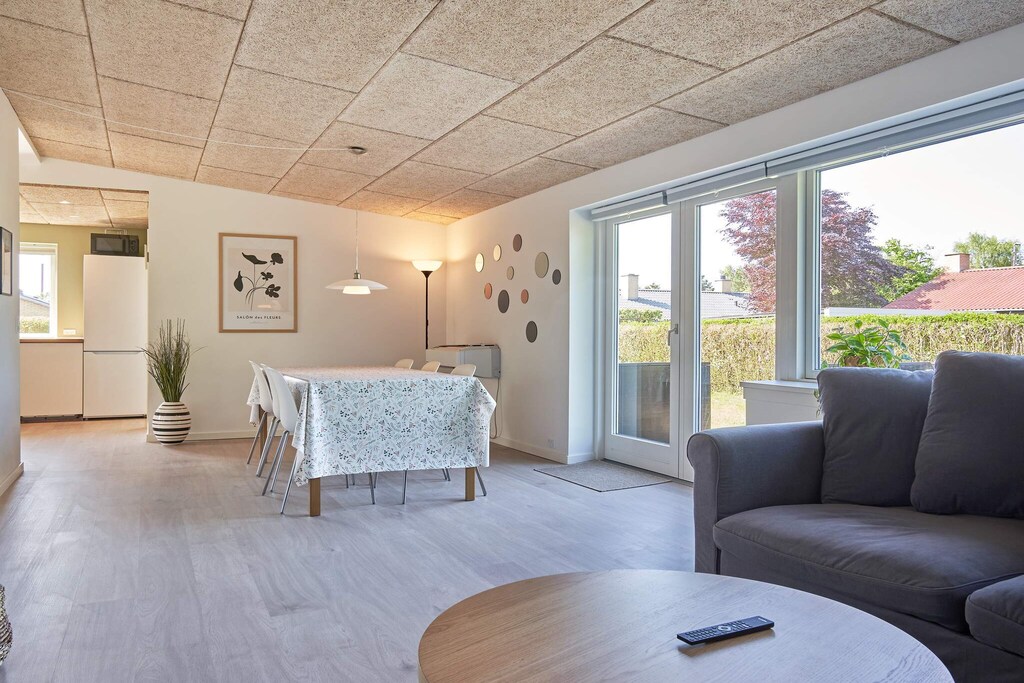 Dieses gemütliche Ferienhaus befindet sich in einem städtischen Feriengebiet auf Bornholm und ist ideal für Familien. Das Haus verfügt über ein helles Wohnzimmer mit einem Doppelbett, Radio und Fernseher. Es gibt zwei Schlafzimmer; eines mit einem Doppelbett, das andere mit zwei Einzelbetten und einem Kinderbett, sodass sowohl Erwachsene als auch Kinder bequem untergebracht werden können. Die Küche ist gut ausgestattet mit einem Elektroherd, Kühl-Gefrierkombination, Mikrowelle, Dunstabzugshaube, Kaffeemaschine und Geschirrspüler. Das Badezimmer verfügt über eine Dusche, ein Waschbecken, ein WC, eine Waschmaschine und einen Wäschetrockner. Eine Luft-Luft-Wärmepumpe und eine Elektroheizung sorgen das ganze Jahr über für ein angenehmes Raumklima. Im Außenbereich finden Sie ein 767 m² großes Gartengrundstück mit Terrasse, Gartenmöbeln und einem Holzkohlegrill – perfekt für entspannte Sommerabende. Das Haus ist rauch- und haustierfrei. In der Nähe können Sie eine Vielzahl von Sehenswürdigkeiten erkunden, darunter die Burgruine Hammershus, den Vergnügungspark Brændesgårdhaven, das Bornholm Medieval Center, den Bornholm Butterfly Park, Grønbechs Farm, die historische Burg auf Bornholm, den berühmten Dueodde-Strand, das malerische Naturgebiet Døndalen und die Skulptur „Rytterdrengen".
