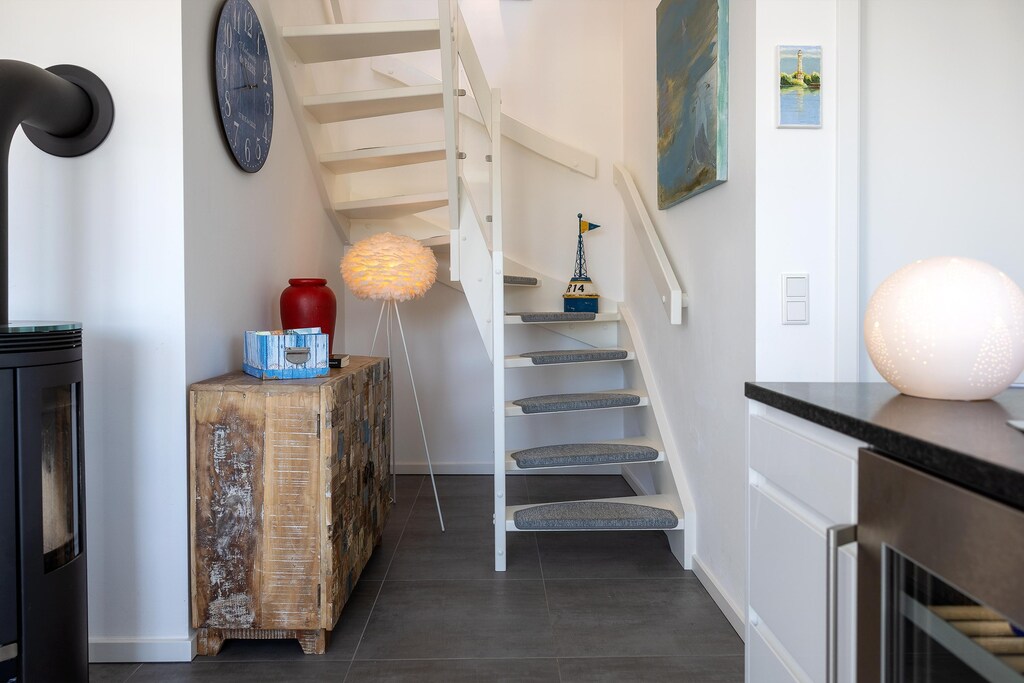 TV, Esstisch (4 Personen), Kaminofen, Sitzecke, Heizung (Fußbodenheizung)