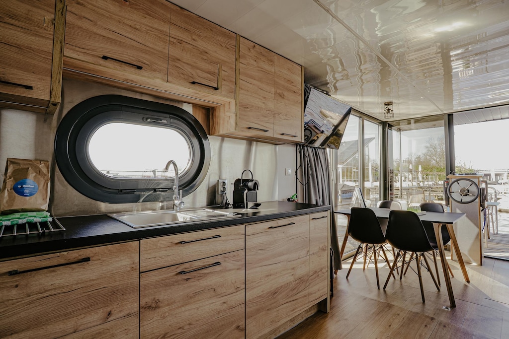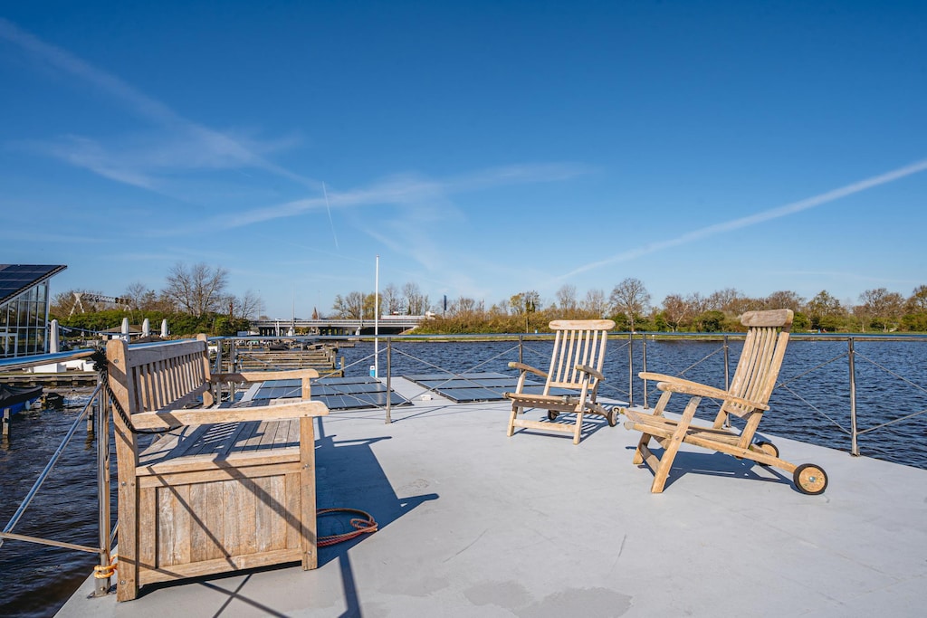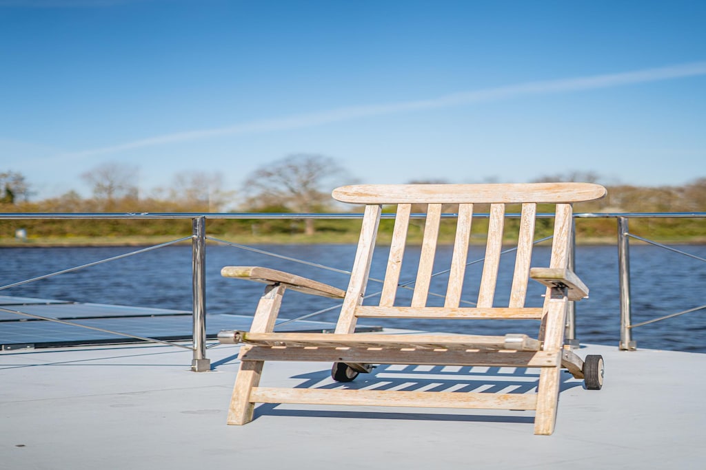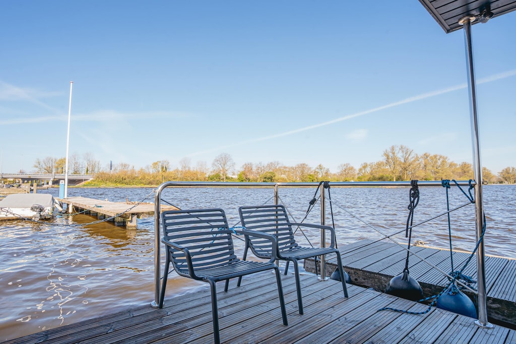 Genießen Sie gleich zwei private Außenbereiche. Genießen Sie Ihren Morgenkaffee auf dem Achterdeck mit dem friedlichen Yachthafen zu Ihren Füßen und genießen Sie anschließend auf der Dachterrasse einen Drink bei Sonnenuntergang und Panoramablick über das Uitgeestermeer. Ob Sie im Freien speisen, ein Sonnenbad nehmen oder den Sternenhimmel beobachten – dieses Hausboot macht jeden Moment unvergesslich.