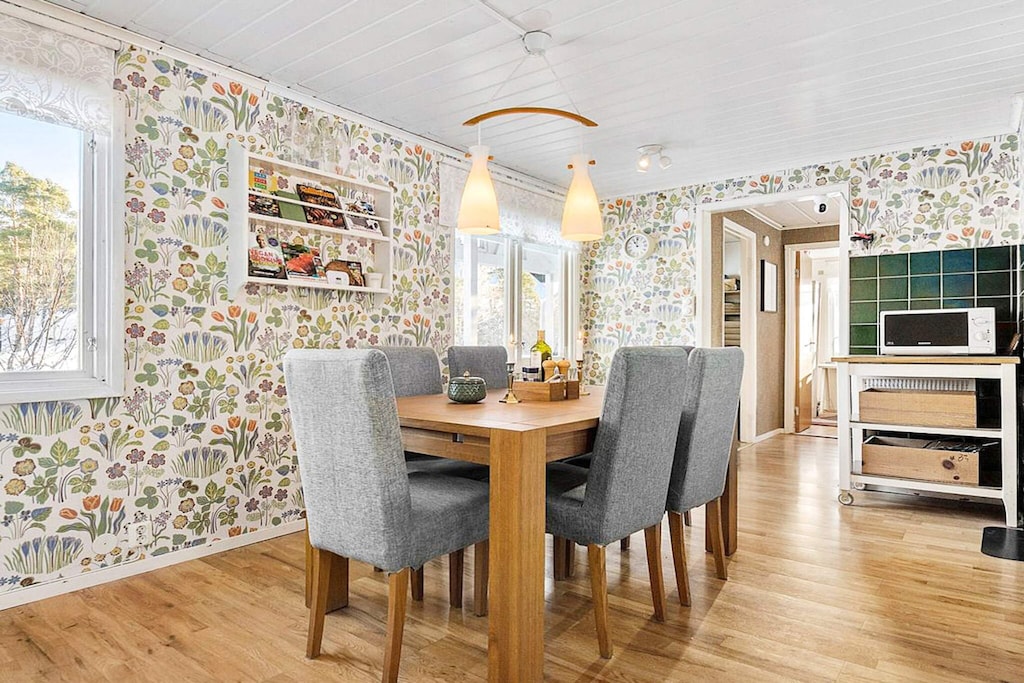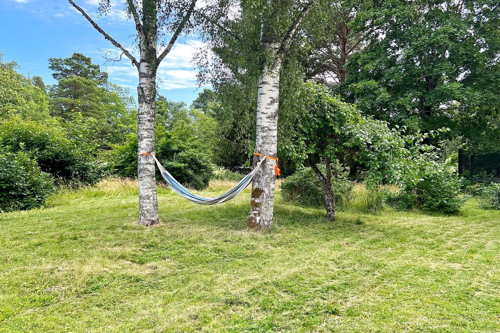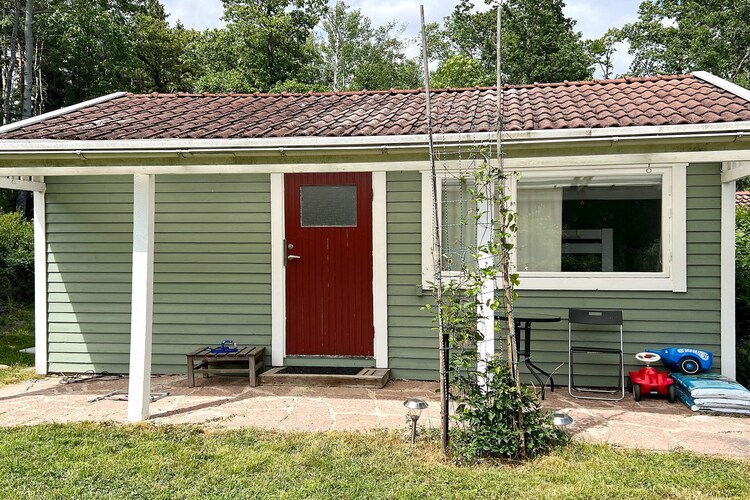 Willkommen in einem schönen Ferienhaus auf Värmdö, das Platz für zwei Familien bietet. Die Häuser liegen auf einem offenen, hellen und flachen Gartengrundstück mit etwas Seeblick über Skärmaröviken, also nah am Wasser. Das Hauptgebäude ist 85 m2 groß und besteht aus drei Zimmern, von denen zwei Schlafzimmer sind; eines mit Doppelbett, das andere mit einem Hochbett mit zwei Kojen. Das ansprechend renovierte Badezimmer mit WC und Dusche hat geflieste Wände und Fliesenboden. Zentral im Haus befindet sich eine geräumige Küche mit einem größeren Esstisch. In der Küche gibt es einen Herd mit Umluftofen, einen kleinen Holzofen, eine Dunstabzugshaube, einen raumhohen Kühl- und Gefrierschrank und eine Spülmaschine. Neben der Küche befindet sich ein angenehmes Familienzimmer mit einem Kamin mit Holzofen und Fenstern in drei Himmelsrichtungen, die für einen schönen Lichteinfall und ein luftiges Ambiente sorgen. Vom Familienzimmer aus kommt man hinaus auf die gepflasterte Terrasse, wo sich auch ein Kamin befindet. Es steht nebenan zudem ein winterfestes Gästehaus (Annex) von 65 m2 Größe. Beide Häuser haben Dusche und WC, im Badezimmer des Gästehauses gibt es zudem eine Waschmaschine. Das Gästehaus hat ein Familien-Etagenbett für drei Personen und ein Einzelbett. Auf dem großen flachen Grundstück wachsen sowohl Obstbäume als auch Beerensträucher. Zum Bus sind es nur 100 m, wenn Sie die Gegend ohne Auto erkunden möchten. Ein guter Sandstrand und Badestege findet man ca. 2 km vom Haus entfernt.