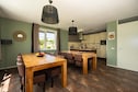 Im Inneren bietet die Villa einen modernen und voll ausgestatteten Wohnbereich, der auf Komfort und Bequemlichkeit ausgelegt ist. Das Erdgeschoss umfasst ein geräumiges Wohnzimmer und eine voll ausgestattete Küche, die sich ideal zum gemeinsamen Zubereiten von Mahlzeiten eignet. Die Villa bietet insgesamt acht Schlafzimmer mit jeweils einem Doppelbett und viel Platz für einen erholsamen Aufenthalt. Zwei Badezimmer im Obergeschoss und eines im Erdgeschoss sorgen für Komfort und Privatsphäre für alle Gäste.