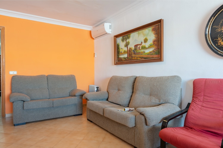Im Innenbereich empfängt Sie das geräumige, klimatisierte Wohn- Esszimmer mit Sat-TV, ideal zum Entspannen oder Lesen. Die voll ausgestattete Küche verfügt über ein Cerankochfeld, Mikrowelle, Spülmaschine und alle weiteren wichtigen Geräte und Utensilien. Sie hat einen direkten Zugang zur Terrasse, so können Sie die Köstlichkeiten auf der Terrasse mit Meeresbrise genießen. 2 Bäder sind für alle Bewohner zugänglich, eins hat eine Badewanne, das andere eine Dusche. Es gibt 3 klimatisierte Schlafzimmer mit je 1 Kleiderschrank. Zwei haben ein Doppelbett und das andere hat zwei Einzelbetten und einen Schrank. Ein Kinderbett und Hochstuhl werden auf Anfrage zur Verfügung gestellt. Die Ausstattung wird mit einer Waschmaschine, Bügelbrett und Bügeleisen, sowie (auf Anfrage) 2 Elektroradiatoren für die kühlere Jahreszeit komplettiert.