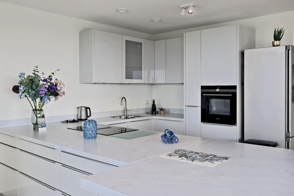 Der geräumige Balkon ist mit Terrassenmöbeln ausgestattet und erstreckt sich zur Seite des Apartments. Sie haben vom Wohnzimmer und beiden Schlafzimmern aus Zugang zum Balkon. Sie können hier mit einer Tasse Kaffee aufwachen und den Panoramablick auf das Meer bewundern oder abends mit Ihrer Gesellschaft ein schönes Abendessen genießen und dabei den wunderschönen Sonnenuntergang genießen. Ein ultimatives Urlaubsgefühl!