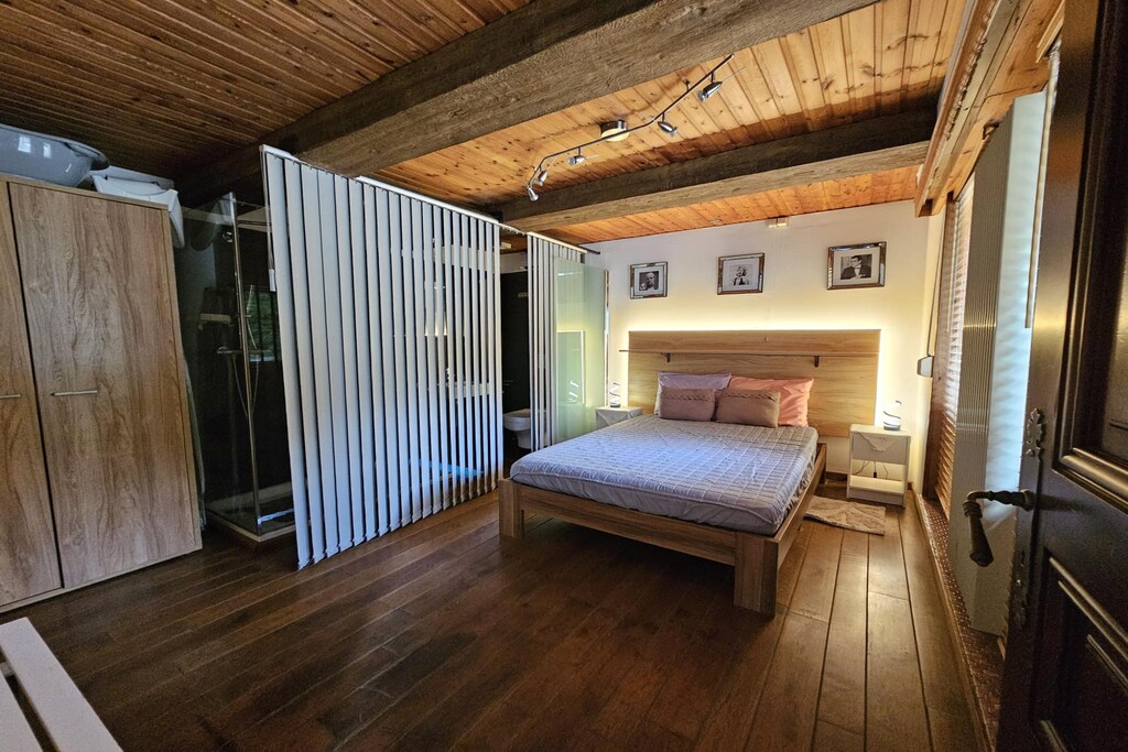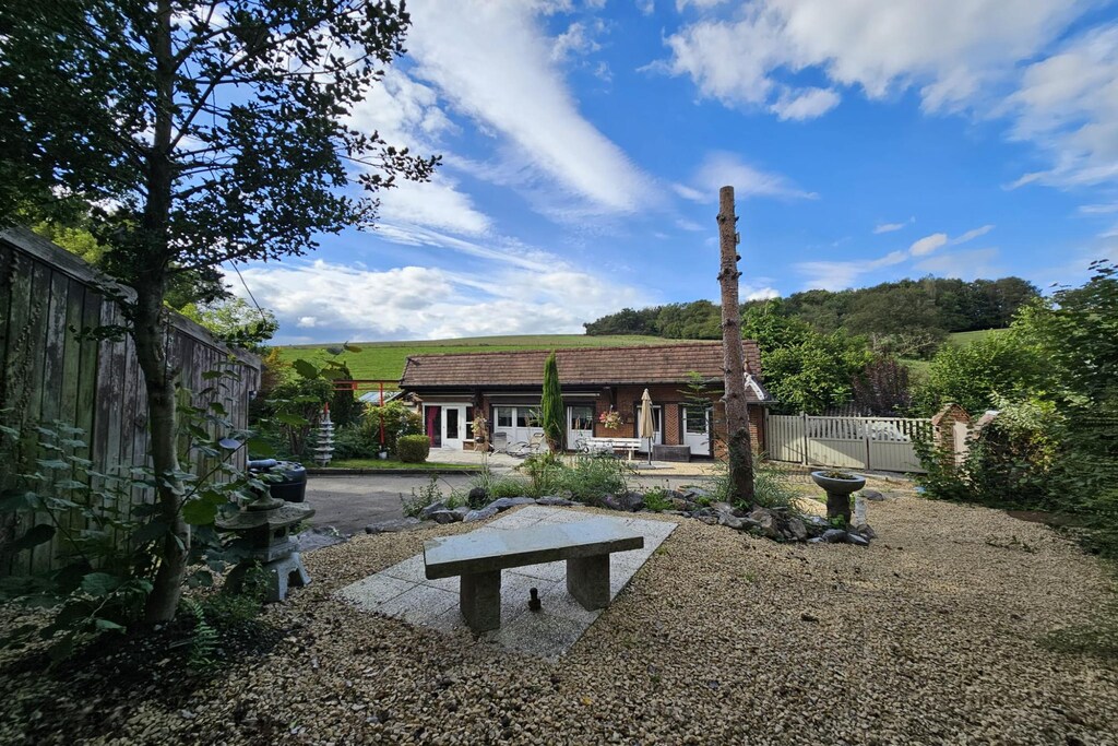 Versteckt in einer ruhigen, grünen Umgebung bietet dieses charmante Bauernhaus einen sicheren und ruhigen Rückzugsort für ein Wochenende oder einen längeren Aufenthalt. Ein gesicherter Eingang mit Alarmanlage und eine private Garage garantieren Komfort und Privatsphäre. Das gemütliche Interieur verfügt über zwei moderne Schlafzimmer, eines davon mit offenem Badezimmer, und einen warmen, rustikalen Charme, der zum Entspannen einlädt. Große Fenster blicken auf den wunderschön angelegten Garten und schaffen einen erholsamen Rückzugsort in der Natur.