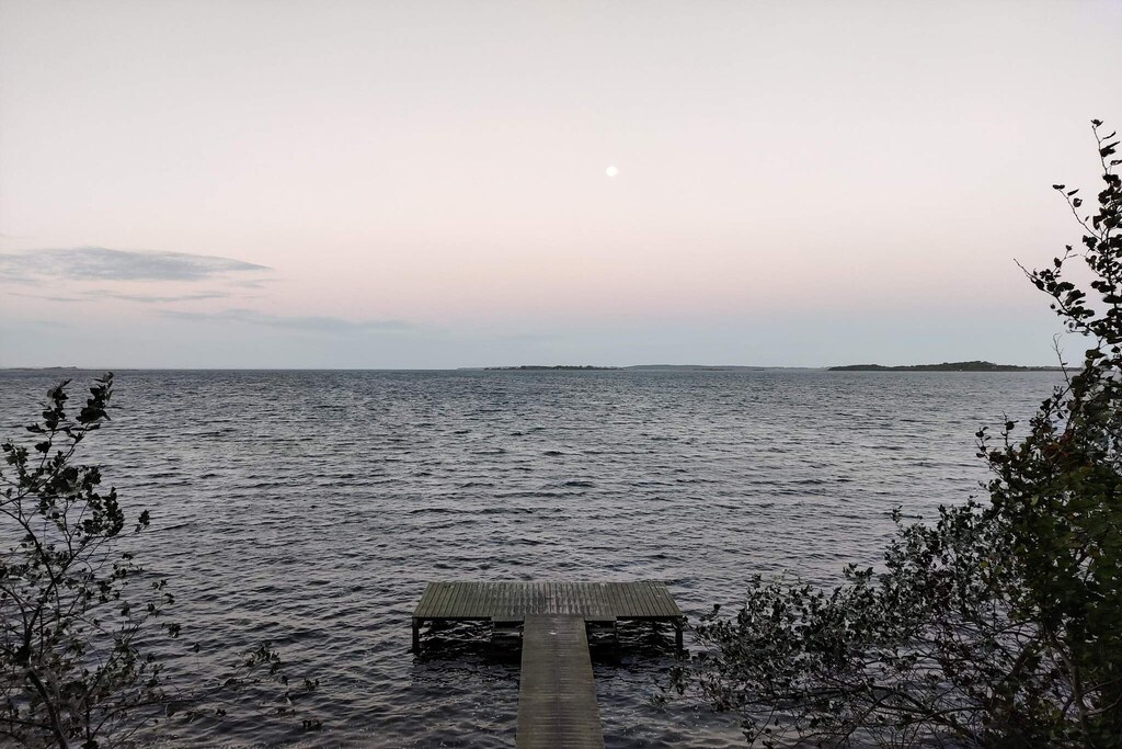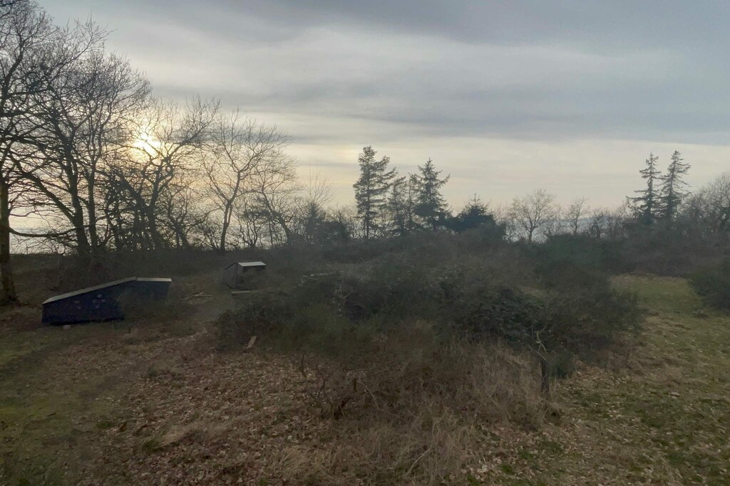Beliggenheden, ligger højt med udsigt over vigen og marker