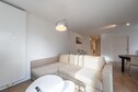 Das helle Wohnzimmer öffnet sich zum Balkon und lässt viel Tageslicht herein. Die offene Küche ist komplett mit modernen Geräten wie Backofen, Mikrowelle und Geschirrspüler ausgestattet, sodass Sie bequem zu Hause kochen und Ihre Mahlzeiten genießen können. Das Wohnzimmer verfügt außerdem über ein Doppelschlafsofa, das zusätzlichen Platz für Gäste bietet. Die beiden Schlafzimmer des Apartments bieten einen erholsamen Aufenthalt. Das Hauptschlafzimmer verfügt über ein bequemes Doppelbett, das zweite über ein Etagenbett – ideal für Familien oder kleine Gruppen.