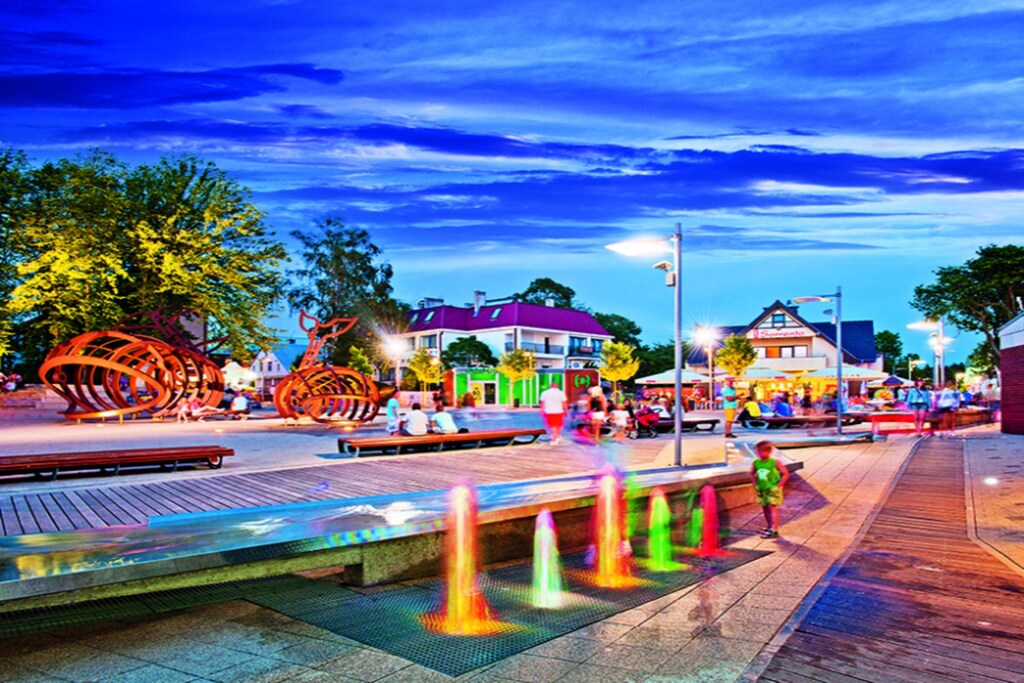 Rewal ist ein Ferienort in der Woiwodschaft Westpommern. Es liegt am Ufer der Ostsee und ist das Zentrum der malerischen Rewal-Küste. Rewal bietet Touristen einen sauberen Strand und einen bewachten Badebereich. Hier gibt es auch einen Angelstützpunkt, der sich perfekt als Hintergrund für Erinnerungsfotos eignet. Da Sie sich in der Nähe des Strandes befinden, müssen Sie unbedingt das Wahrzeichen der Stadt sehen. Das sind die riesigen Rewal-Wale, die auf der Promenade direkt an der Küste und auf der Aussichtsplattform stehen. Kinder werden von einem Besuch im Walpark begeistert sein. Bei schlechtem Wetter bietet sich ein Ausflug in eines der mehreren öffentlichen Hallenbäder an. Der Stolz der Stadt ist die renovierte Schmalspurbahn, die Ihnen einen reizvollen Ausflug in benachbarte Ferienorte ermöglicht.