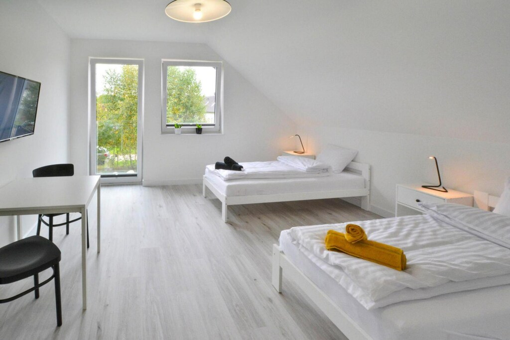 Der wunderschöne Strand ist bequem zu Fuß oder mit dem Fahrrad erreichbar (nur 850 Meter über einen ruhigen Weg). Mielenko ist ein kleiner Ort am Rande des beliebten Badeortes Mielno. Dort finden Sie zahlreiche Freizeiteinrichtungen, Restaurants und Cafés. Auch mehrere Geschäfte und Bars befinden sich in der Nähe. Der internationale Radweg R-10 verläuft in unmittelbarer Nähe und ermöglicht bequemes Radfahren zu den umliegenden Küstenorten: Mielno (ein größerer Badeort mit vielen Attraktionen, Restaurants und Geschäften), Chłopy (ein kleines, historisches Fischerdorf), Łazy, Sarbinowo und Gąski. Der Jamno-See mit Jachthafen und Wassersportverleih (Tretboote, Kajaks und Ruderboote) ist 3 km vom Ferienort entfernt. Angelmöglichkeiten gibt es ebenfalls. Obwohl der See für Schwimmer weniger attraktiv ist, bietet er ideale Bedingungen für Wassersport (Windsurfen, Kitesurfen – Verleih und Schulen) und Angler.