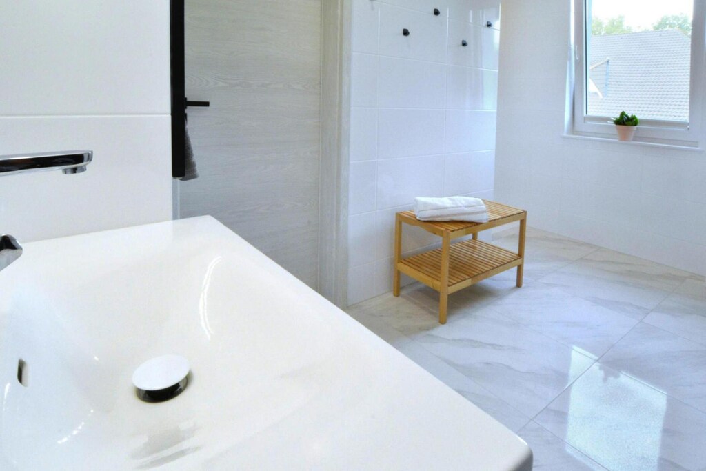 In ruhiger, umzäunter Lage, nur 500 Meter vom Meer entfernt, befindet sich diese moderne und komfortabel eingerichtete Ferienvilla mit eigener Sauna. Sie bietet fünf Schlafzimmer (jeweils mit TV), zwei elegante Badezimmer und ein zusätzliches WC. Im Erdgeschoss befinden sich ein geräumiges Wohnzimmer und eine große, gut ausgestattete Küche. Zur Ausstattung gehört außerdem eine Trockensauna für sechs Personen (im Preis inbegriffen). Zentralheizung ist vorhanden. Die Terrasse vor dem Haus ist mit Gartenmöbeln, Liegestühlen und Grillmöglichkeiten ausgestattet. Haustiere sind gegen Aufpreis willkommen. WLAN steht zur Verfügung. Im Preis inbegriffen sind Sauna, Bettwäsche, Handtücher, Wasser, Parkplatz, Kinderbett und Hochstuhl sowie die Endreinigung.