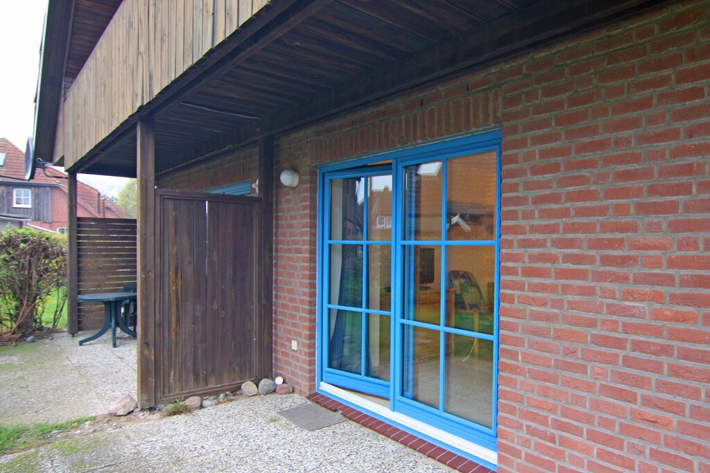 Beschreibung des Außenbereichs: Auf der Terrasse befinden sich Gartenmöbel sowie ein Grill. Grünflächen am Haus zum Sonnenbaden und Spielen für die Kinder sind ebenfalls vorhanden.