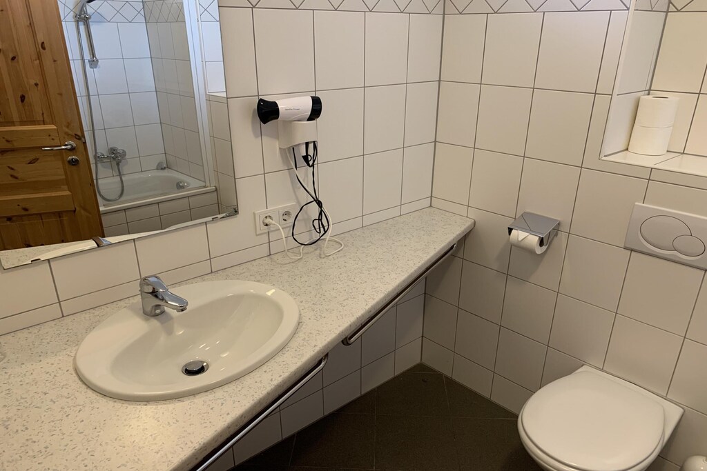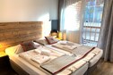 Der einladende Wohnbereich mit Essbereich bietet direkten Zugang zu einem privaten Balkon, auf dem Sie die frische Bergluft und die malerische Aussicht genießen können. Das Badezimmer verfügt über eine Badewanne, eine Toilette sowie einen Haartrockner. Die Küchenzeile ist mit allem Notwendigen ausgestattet.
