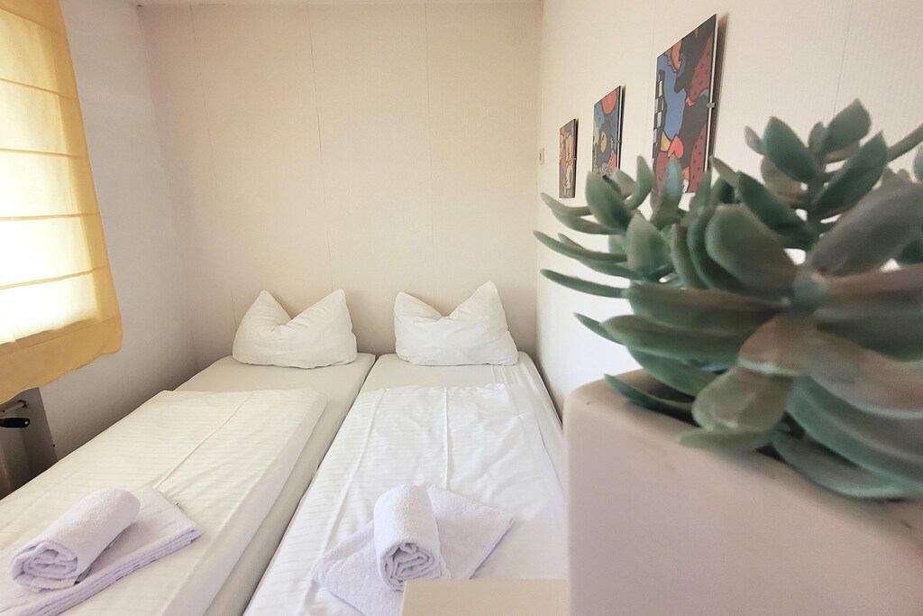 Insgesamt gut 75 m² Wohnfläche verteilen sich auf eine Diele, einen großen Wohn-Essraum mit offener Küche und Zugang zum geräumigen Balkon, ein Doppelschlafzimmer, ein kleines Schlafzimmer mit Französischem Bett und ein hell gefliestes Bad mit Dusche/Waschtisch/WC. Das Appartement verfügt zudem über einen Internet-Anschluss/W-LAN.