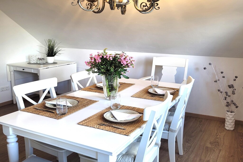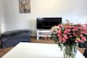 Das Apartment verfügt über einen gemütlichen Wohnbereich mit Fernseher und Esstisch für gemeinsame Mahlzeiten oder entspannte Abende. Die voll ausgestattete Küche bietet mit Kaffeemaschine, Toaster, Backofen, Mikrowelle und Geschirrspüler alles, was Sie für die Zubereitung Ihrer Lieblingsgerichte benötigen. Beide Schlafzimmer sind mit Doppelbetten und Fernsehern ausgestattet und bieten so viel Komfort und Privatsphäre. Das Apartment verfügt außerdem über ein Hauptbadezimmer mit Dusche, WC und Haartrockner sowie ein zusätzliches separates WC für zusätzlichen Komfort.