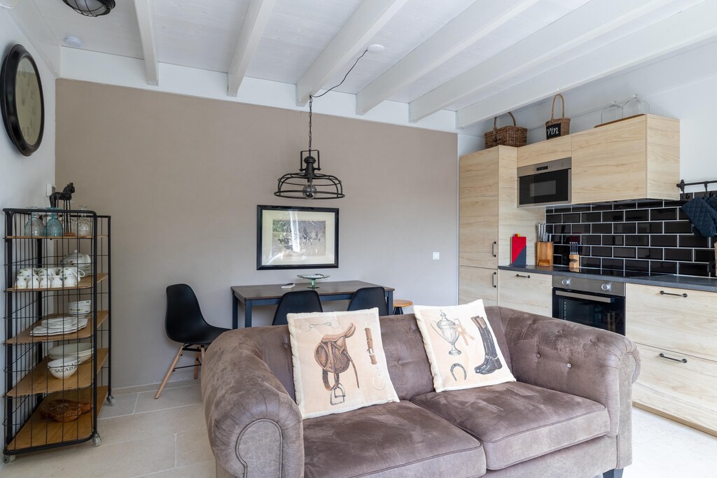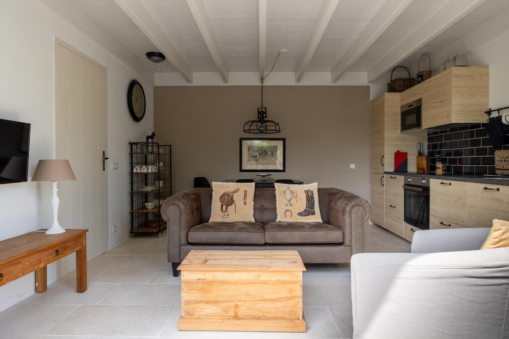 Treten Sie ein in dieses charmante Haus und lassen Sie sich von einer ländlichen, klassischen Atmosphäre empfangen, die an ein authentisches Kutscherhaus erinnert. Das Wohnzimmer ist komfortabel mit einem Doppelsofa und einem separaten Sessel um den Couchtisch in der Fernsehecke eingerichtet. Der Esstisch verfügt über drei Stühle und einen Hocker für gemütliche Mahlzeiten. Die offene Küche ist komplett mit modernen Geräten ausgestattet, darunter ein Induktionskochfeld, eine Mikrowelle, ein Backofen, ein Geschirrspüler, ein Kühlschrank, ein Gefrierschrank, ein Toaster, eine Senseo-Kaffeemaschine, ein Wasserkocher und ein Quooker, um all Ihren Kochbedürfnissen gerecht zu werden. Die erste Toilette befindet sich praktischerweise im Erdgeschoss.