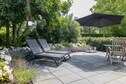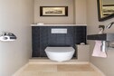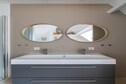 Das offene Badezimmer bietet höchsten Komfort mit einer begehbaren Regendusche, einer zweiten Toilette und einem Doppelwaschbecken.